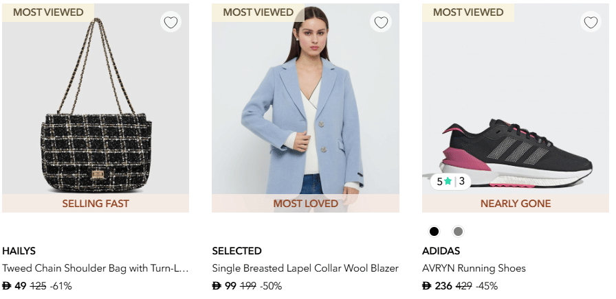 Choose from a wide range of selections, including sandals, boots, bags, activewear, Arabic clothing, jeans, and plus-size clothing.