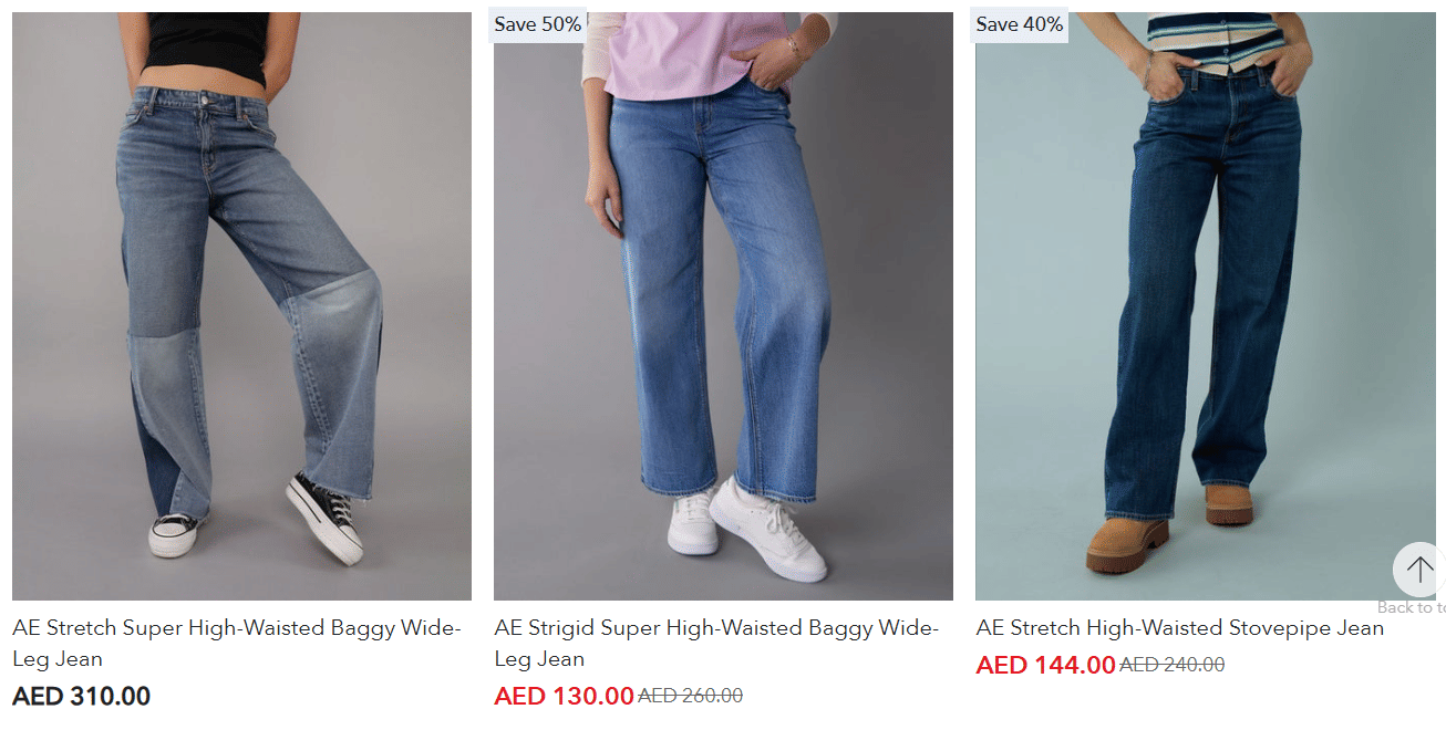 - Top Products: Mom jeans, strigid jeans, flares, jeggings.