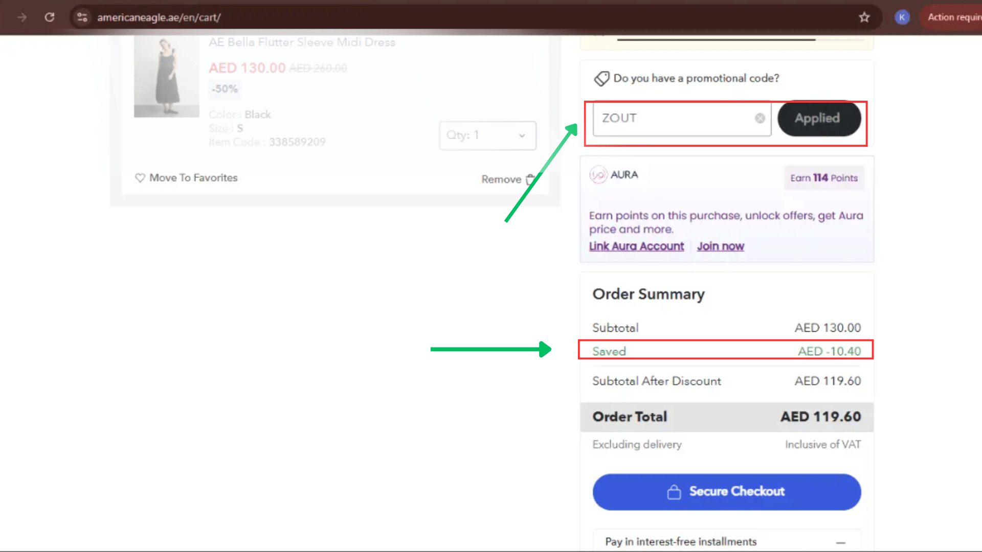 - Enter your promo code for example, ZOUT and click Apply.