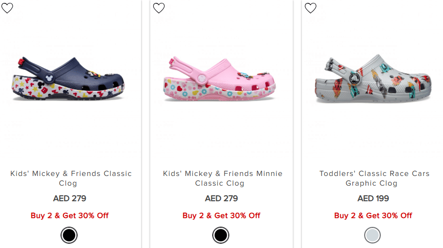 Back-to-School Sale  | August 2026  | Time to grab yourself some long-lasting easy-to-clean kids' shoes with a starting price from AED 89.  | Children's clogs, sandaled types, and cartoon-inspired school shoe.  |