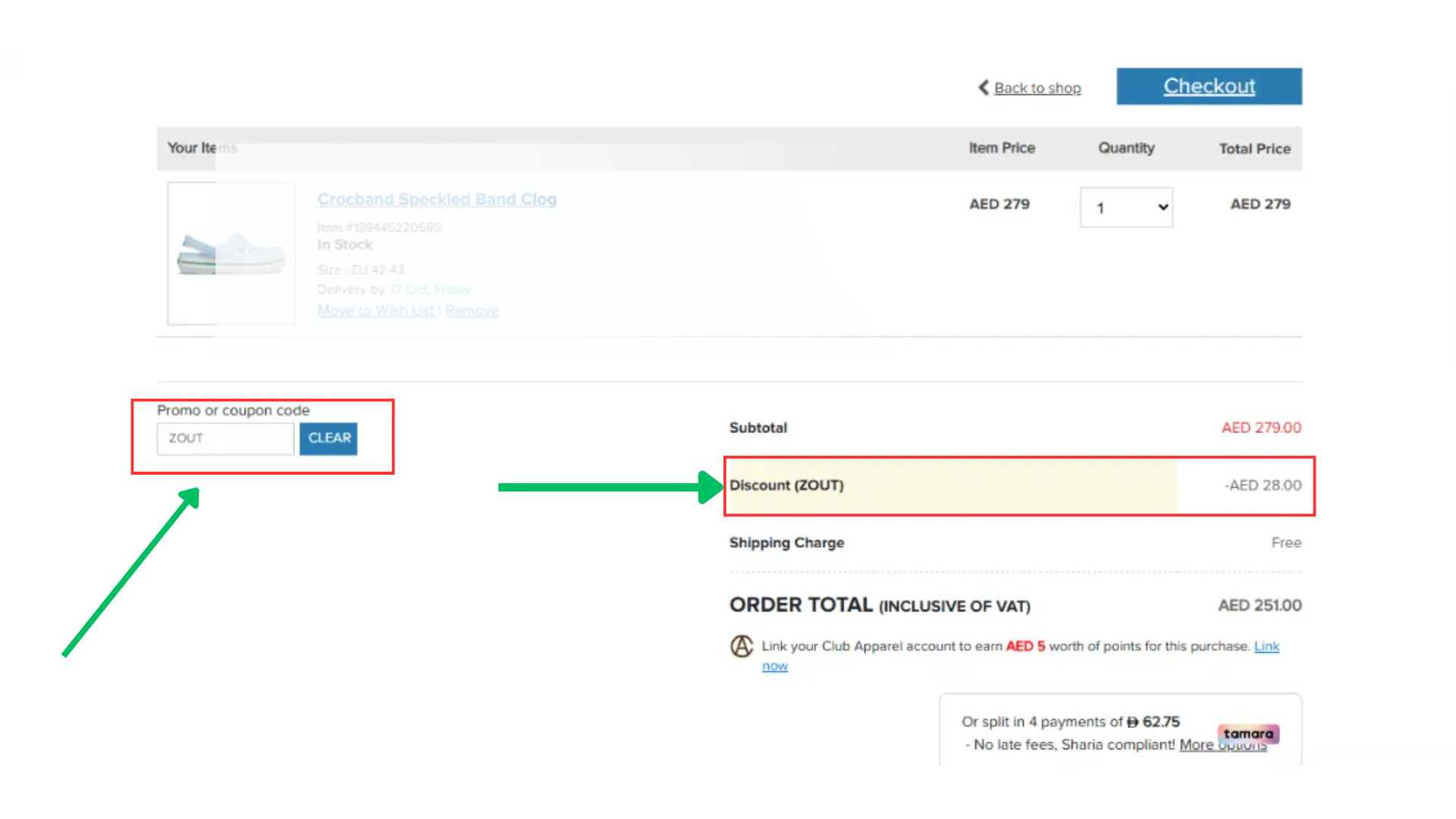 Seasonal sale prices are further discounted, so using a code like ZOUT provides even more savings. Ramadan, summer clearance, and Back to School are optimal periods for code stacking.