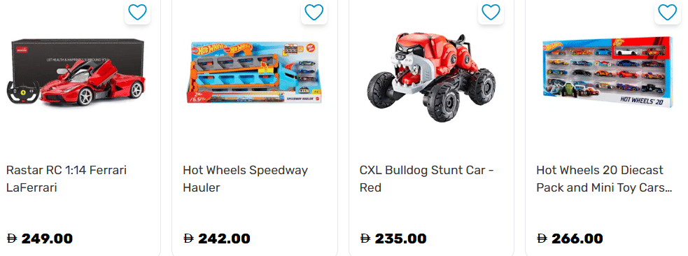 - Top brands- Hot Wheels, SilverLit, DearBong, Bburago, JT Toys, CXL, Sam toys.