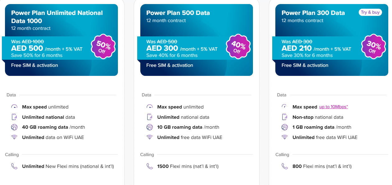 Top plans - Emirati family plans, special number plans, Phone+plan, Upgrade to postpaid plans.