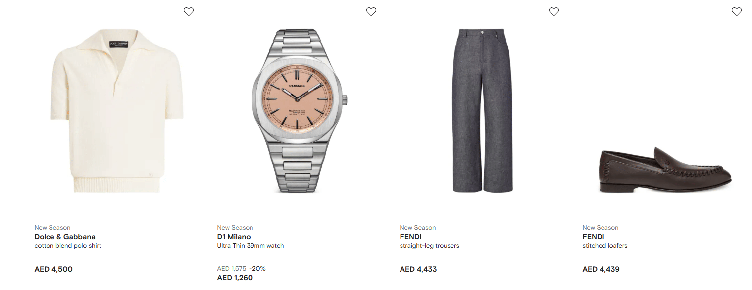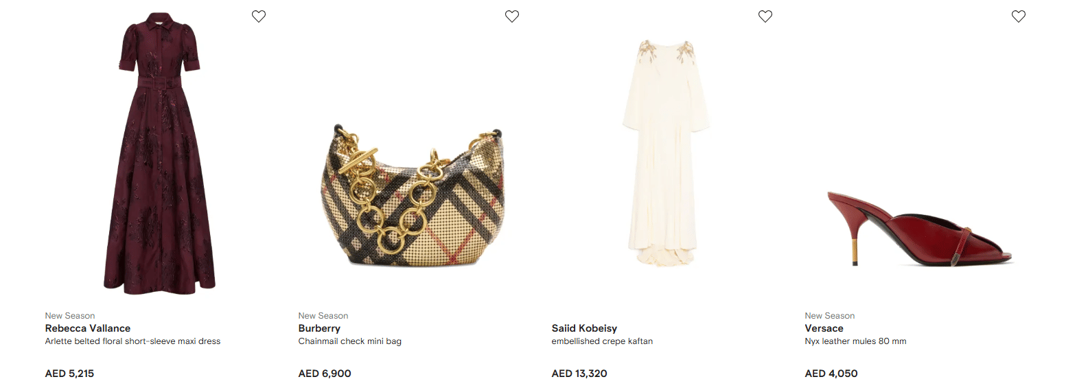 Top Products: Designer dresses, abayas, occasionwear, premium leather bags & mini accessories, luxury footwear, heels, sandals, runway sneakers, and more.
