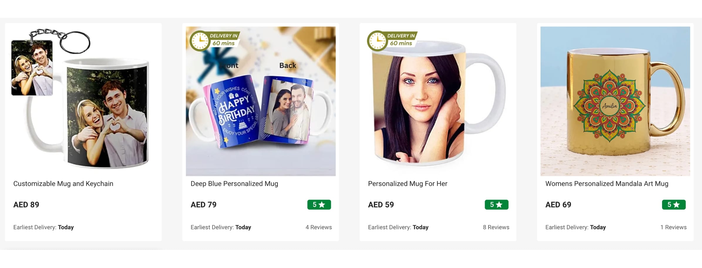 Personalised and printed mugs are a popular add-on gift. They’re practical, affordable, and easy to customise. Starting prices: AED 49.