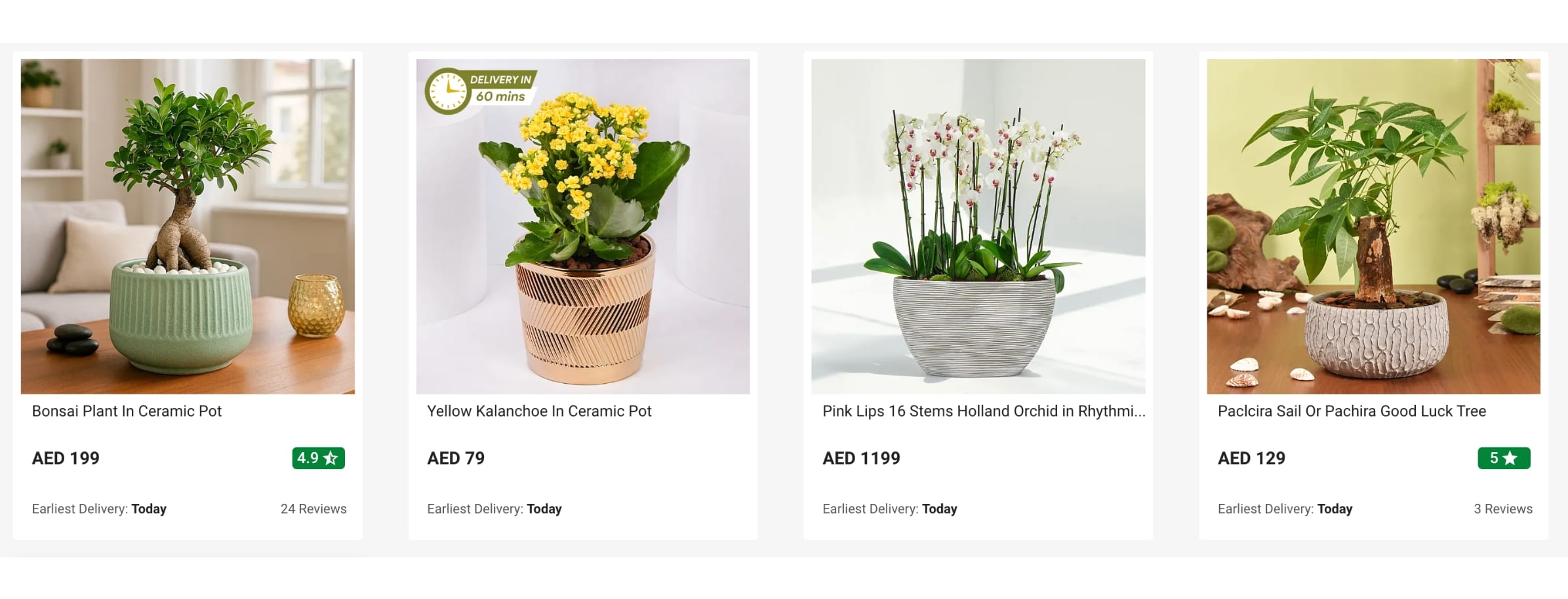 Indoor plants and succulents are often chosen for housewarmings and long-lasting gifts. FnP focuses on easy-care varieties suitable for UAE homes. Prices usually start from AED 39.