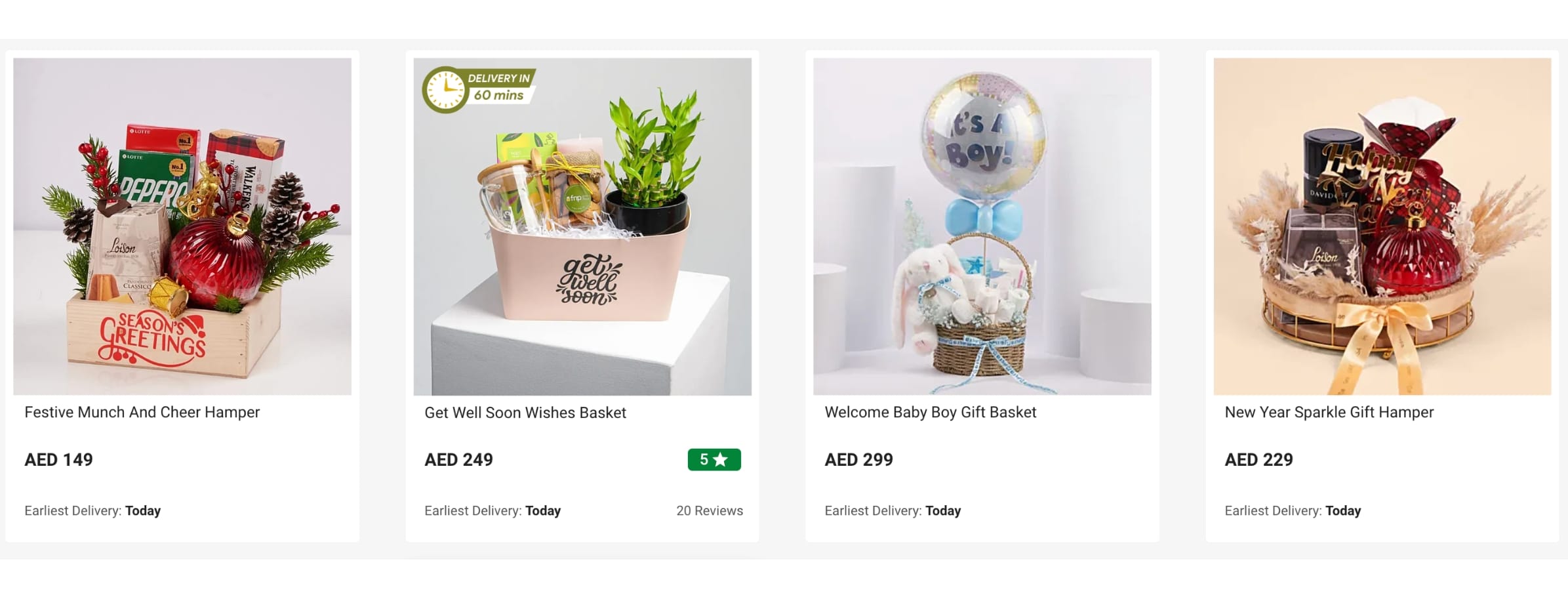 Gift hampers combine chocolates, flowers, snacks, and keepsakes in one package. They’re popular during festivals and corporate gifting seasons. Sale prices often begin from AED 99.