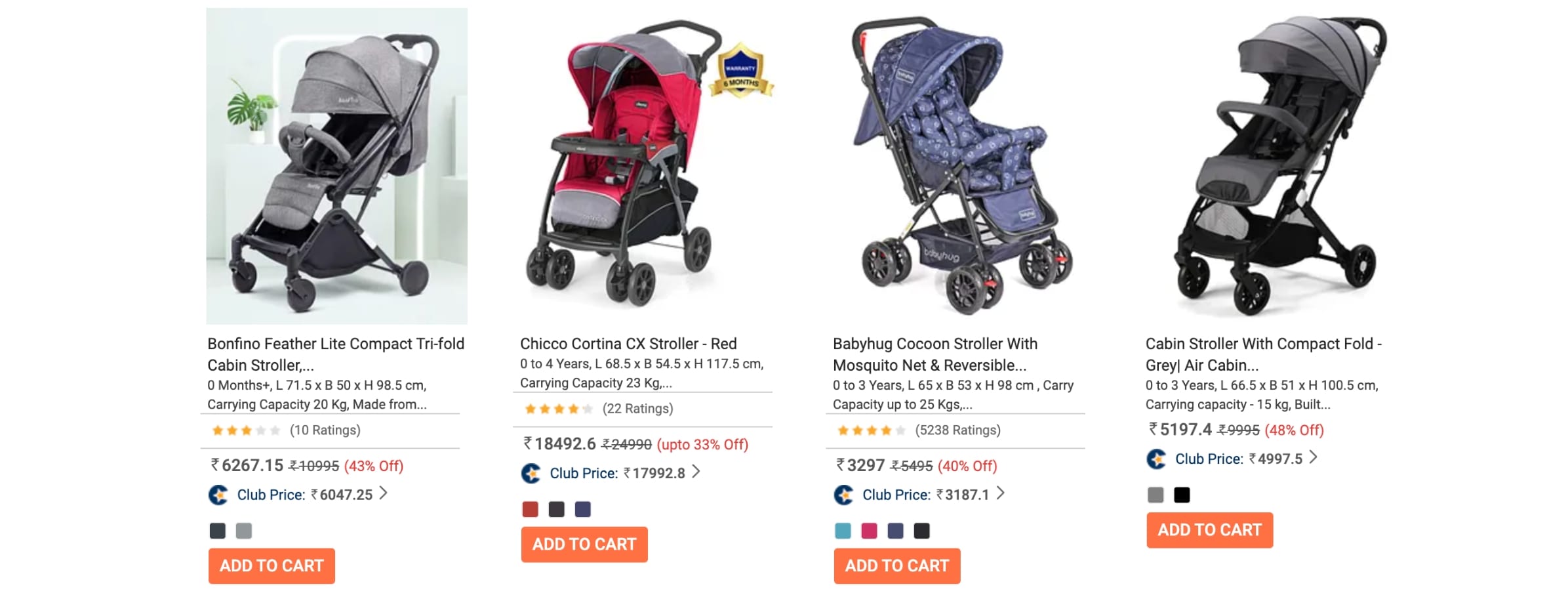 - Top Brands: Teknum, Snuz, PAN Home, Babyhug, Chicco, Graco, Hauck; the usual heavy hitters.