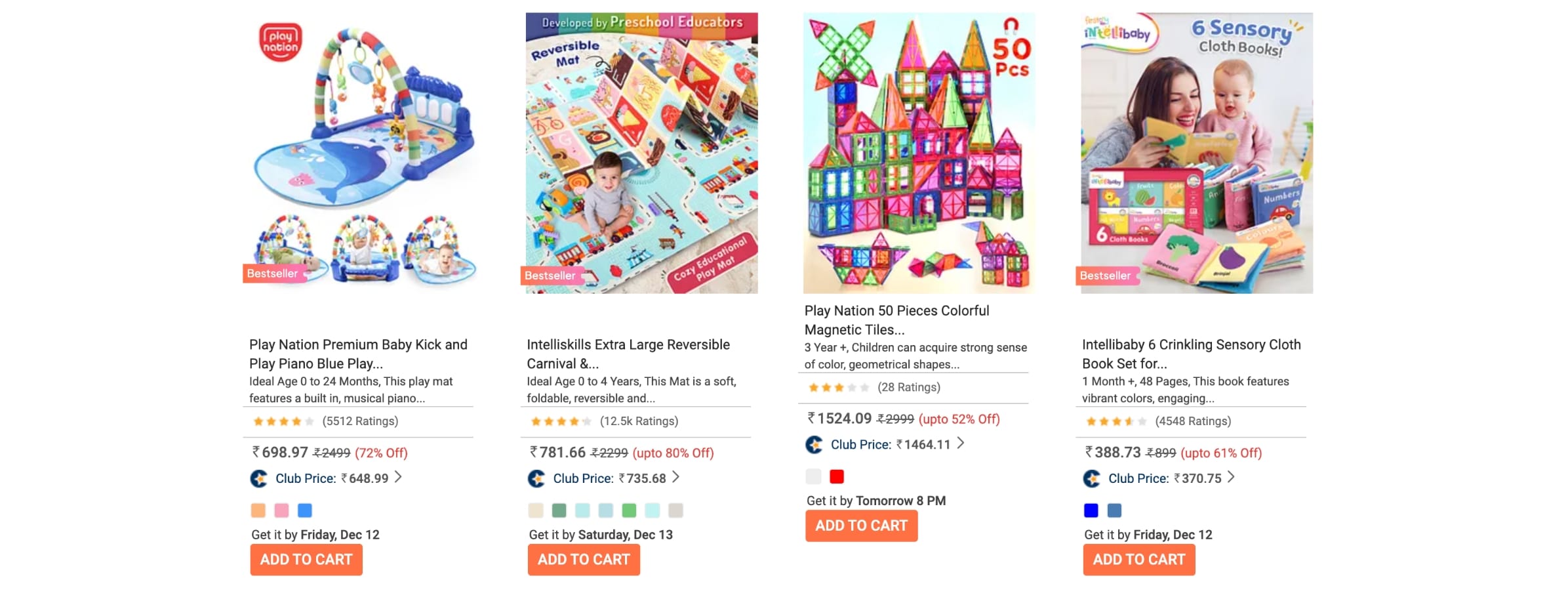 - Top Brands: Lego (duh), KidKraft (the dollhouse dream-maker), Marvel (for tiny superheroes), Melissa & Doug (yeah, the wooden toy people), and Funskool.