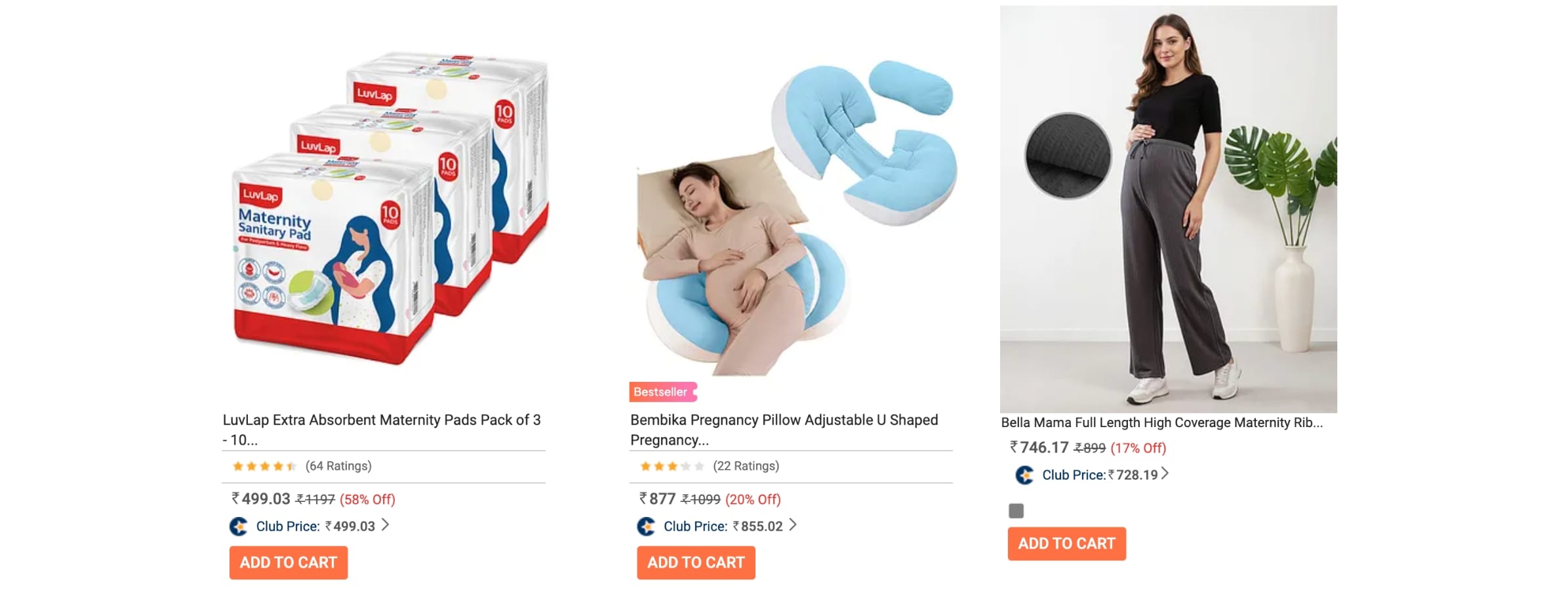 - Top Brands: Mama Earth (everyone’s obsessed with their creams), Medela, Pigeon, The Moms Co., and Babyhug.