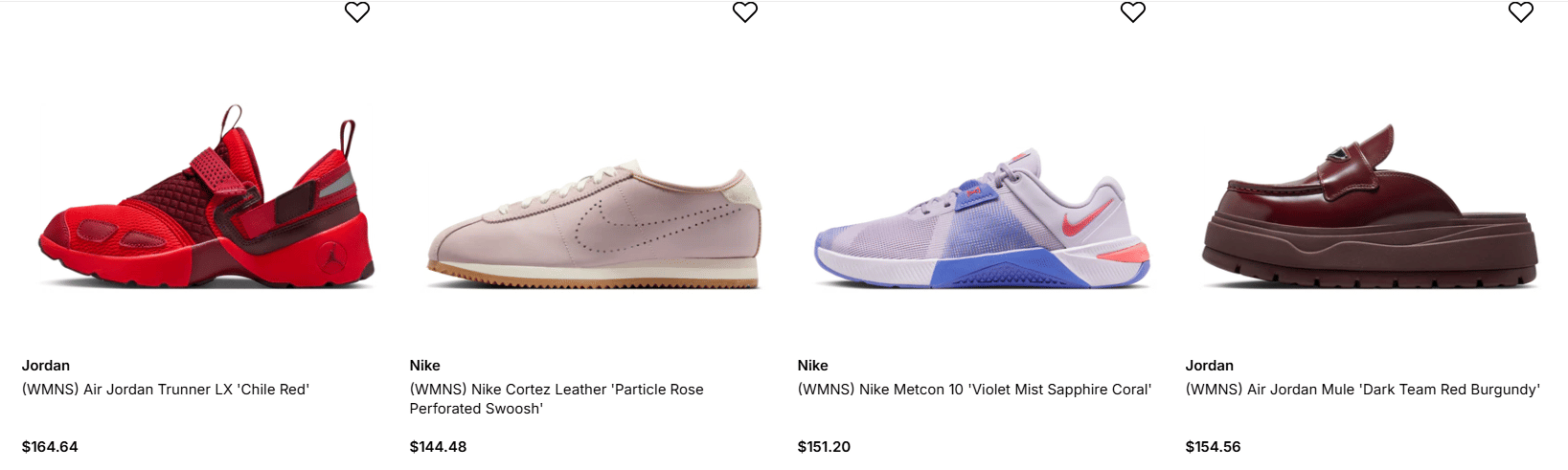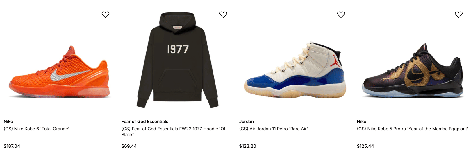 Top Brands— A Bathing Ape, A-Cold-WALL, Adidas, ANTA, AUTRY, Balenciaga, Birkenstock, Burberry, Canada Goose, Casio, Clarks, Hermes, Jordan, Puma, Reebok, and more.