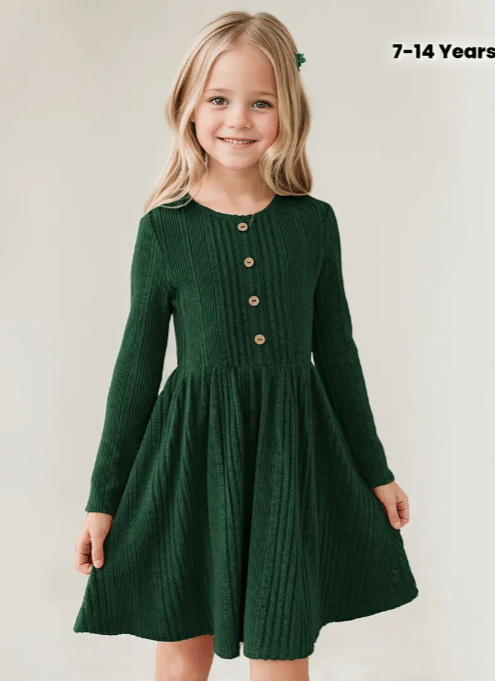 | Kids’ clothing Girls' Knit Ribbed A-Line Dress with Button Detail | |