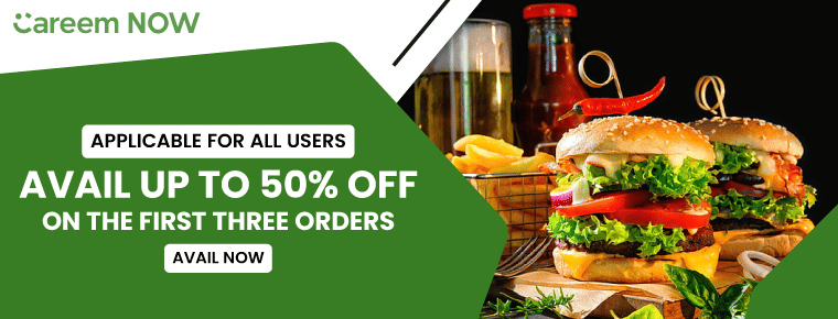 Careem Food Offers a whopping 50% Off on the first three orders made via the Careem app. Use the Careem Now promo codes and coupon codes to get significant discounts on your orders.