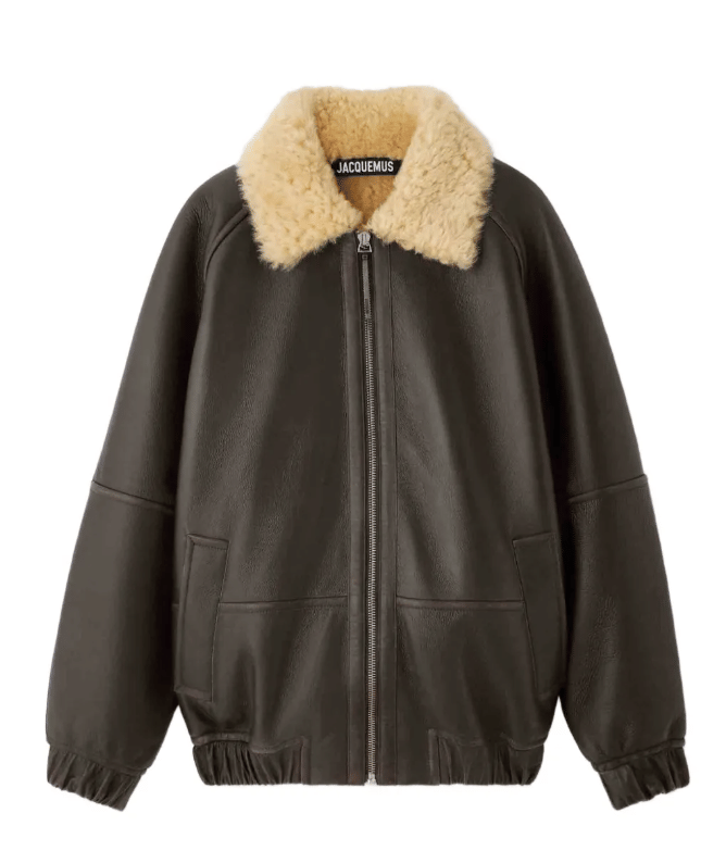 | Jacquemus Piped Pockets Jacket A luxurious brown lamb-skin and shearling jacket with piped pocket detailing and raglan sleeves — designed for standout style and elegant warmth. Details: