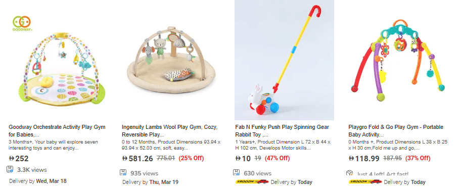 Toys and learning products are another commonly featured category during promotional campaigns. These products are designed to support early learning, creativity, and physical development for babies and young children.