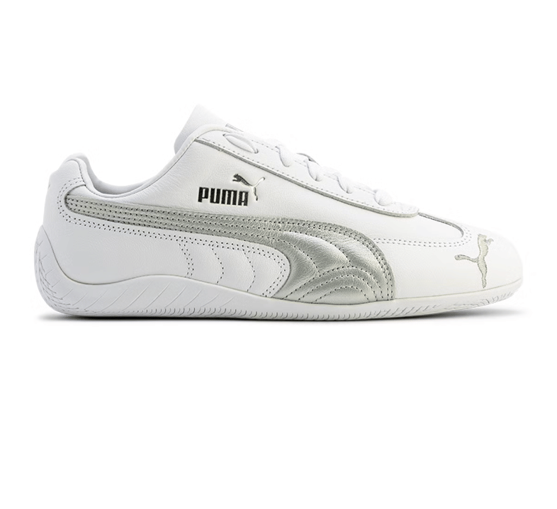 | Puma Speedcat Leather  (Puma White / Puma Silver) A sleek revival of PUMA’s motorsport heritage, the Speedcat Leather pairs timeless design with a slim, low-profile silhouette. Perfect for streetwear styling or casual days on the go. Details: