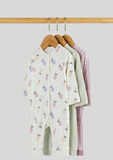 | 3 Pack Berries Footless Sleepsuits Product Details Designed for ultimate comfort, these footless sleepsuits are made from soft, natural cotton that's gentle on young skin. Easy popper fastenings and a copper-coloured popper to guide dressing make changes simple. Finished in contemporary prints, they're a perfect choice for cosy days and peaceful nights. Feature and Benefits