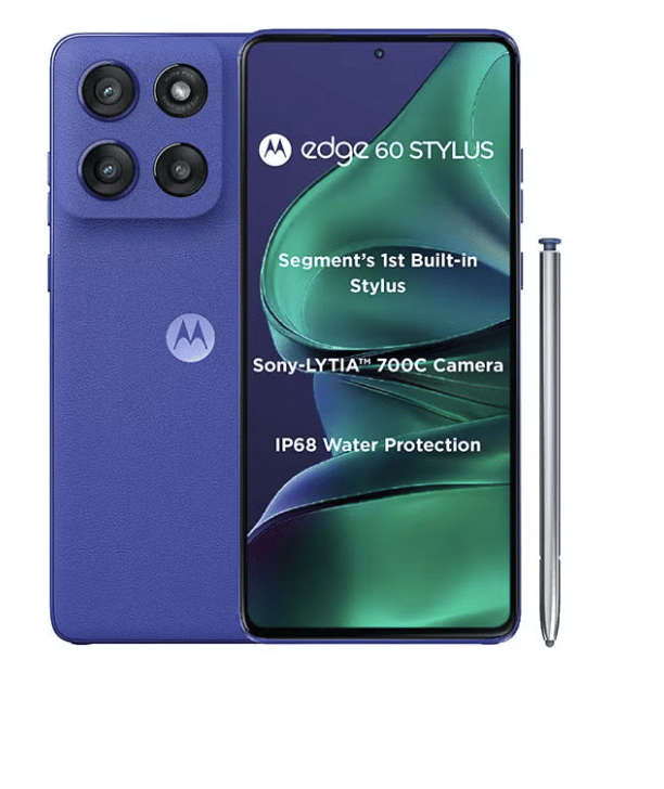 | Edge 60 Stylus 5G (Dual SIM, 8GB RAM, 256GB, Surf The Web Blue) A robust smartphone balancing performance, stylus support and storage — good for productivity and creativity. Details:
