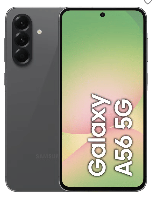 | Galaxy A56 5G (Dual SIM, 8GB RAM, 256GB, Awesome Graphite) A balanced mid-range 5G phone with solid specs for daily use and entertainment. Details: