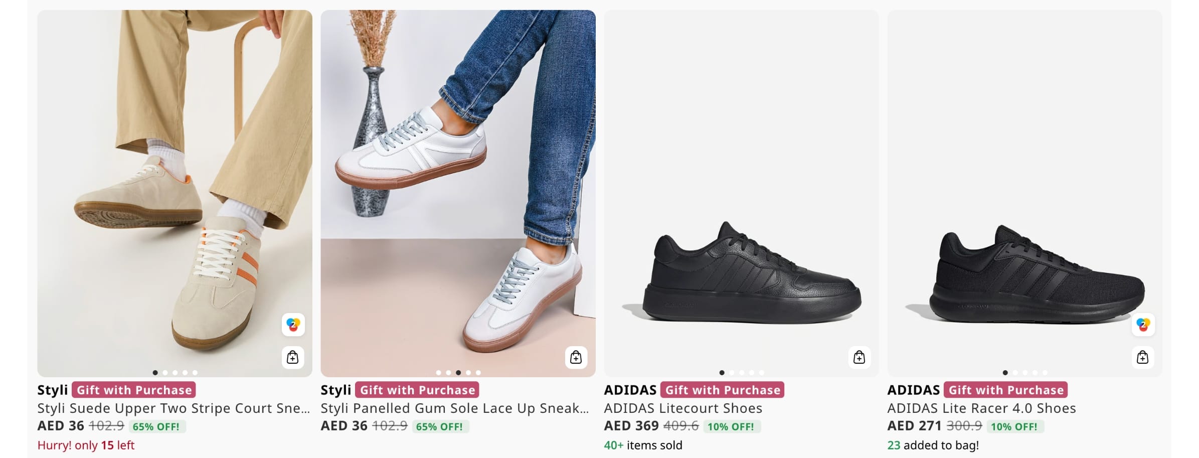 - Top brands available: Styli, Puma, Adidas, New Balance, Skechers and more