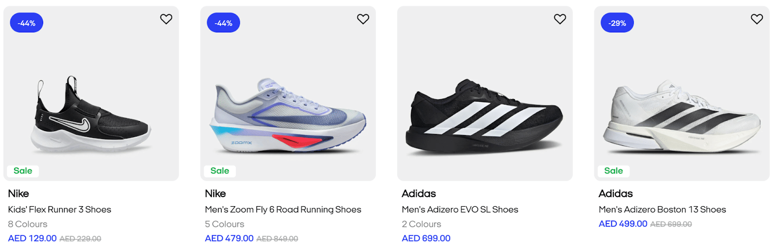 adidas Ultraboost 22 | AED 749 | AED 529 | AED 545 |