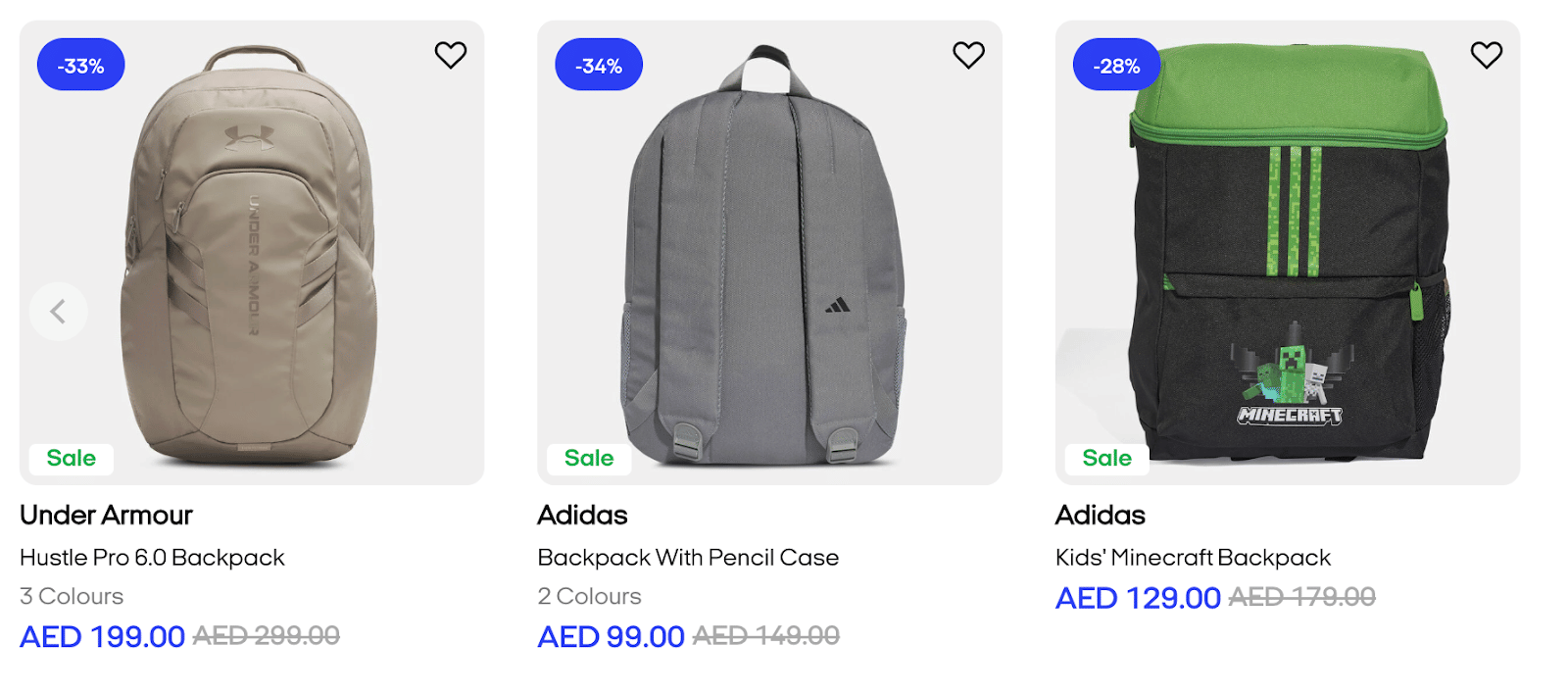 Sun and Sand Sports (SSS) is one of the UAE's top destinations for sportswear, shoes, and active lifestyle essentials. SSS's partnerships with Nike, Adidas, Puma, Under Armour, Vans, Converse, and Speedo allows them to offer sports and fitness gear for men, women, and children of all ages and abilities.