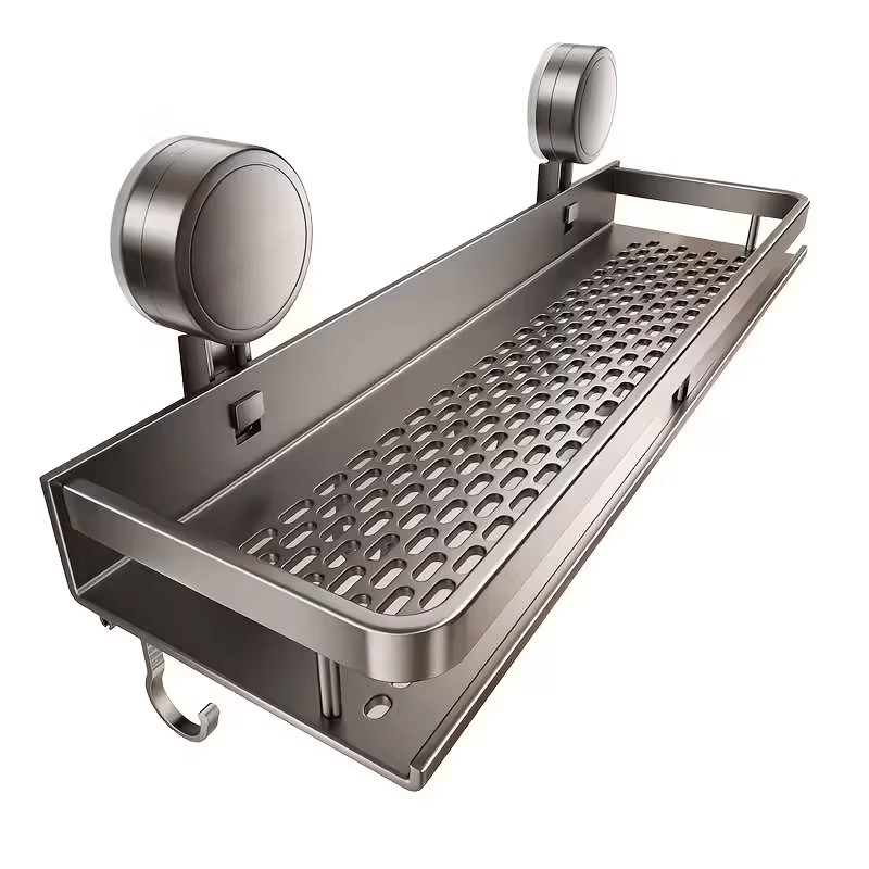 | Heavy-Duty Shower Organizer with Hooks A space-saving bathroom shelf designed for secure, no-drill installation. Details: