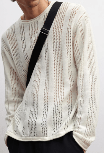 | Regular Fit Pointelle-knit jumper Jumper in a soft pointelle knit made from cotton, linen and viscose featuring a neckline, dropped shoulders, long sleeves and a straight hem. Product Details