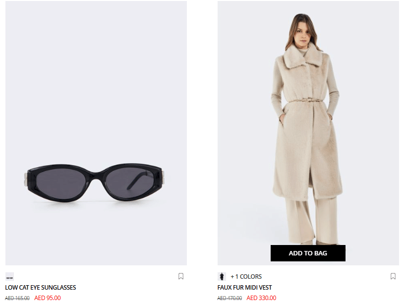 | Low Cat Eye Sunglasses | AED 165 | AED 95 | AED 88 |