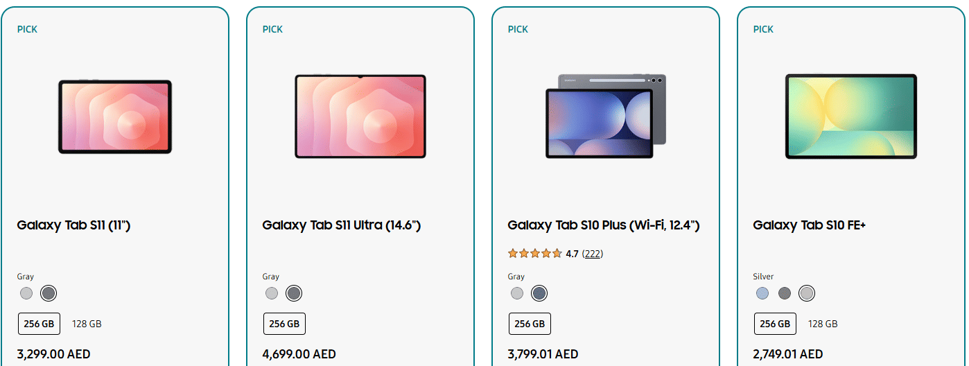 - Top Products: Galaxy Tab S9, Tab S9 FE, Tab S11 series