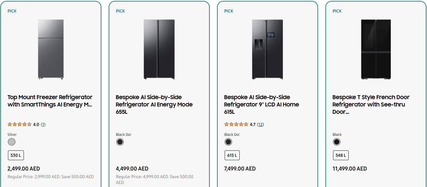 Bespoke Refrigerator 4-Door Flex | AED 11,999 | AED 9,799 | AED 11,499 (Sharaf DG) |