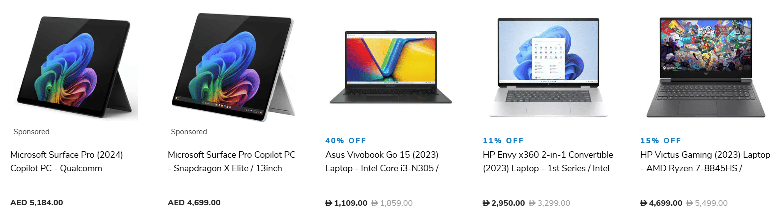 Microsoft Surface Book 2 | AED 6,718.95 | AED 2,958.01 | AED 2,908.01 |