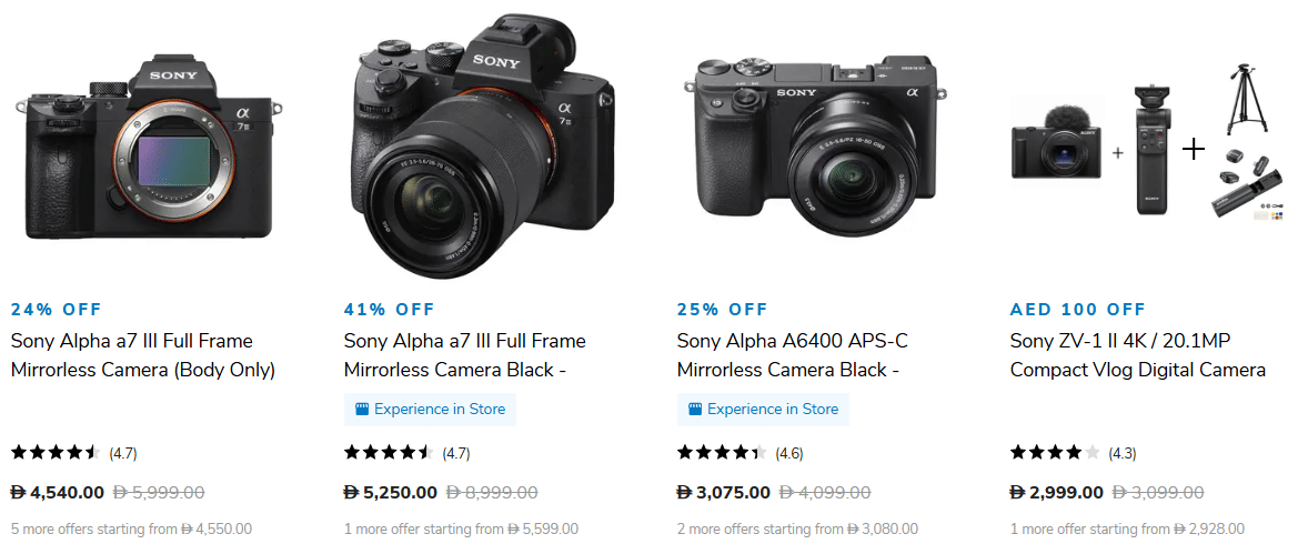 Top brands - Canon, Sony, Nikon, Fujifilm, Sjcam, DJI, Go Pro, Insta360, Fuji, Goxtreme, and more.