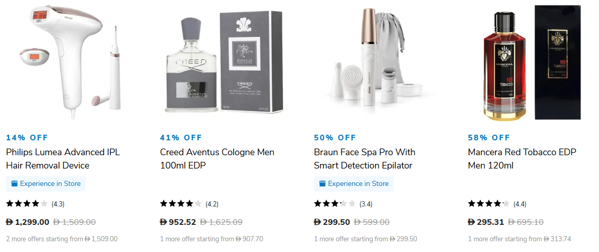 Top products - shavers, trimmers, hair stylers, hair clippers, fitness trackers, weighing scales, treadmills, protective gears, exercise bikes, watches, perfumes, frames, health care devices, and more.